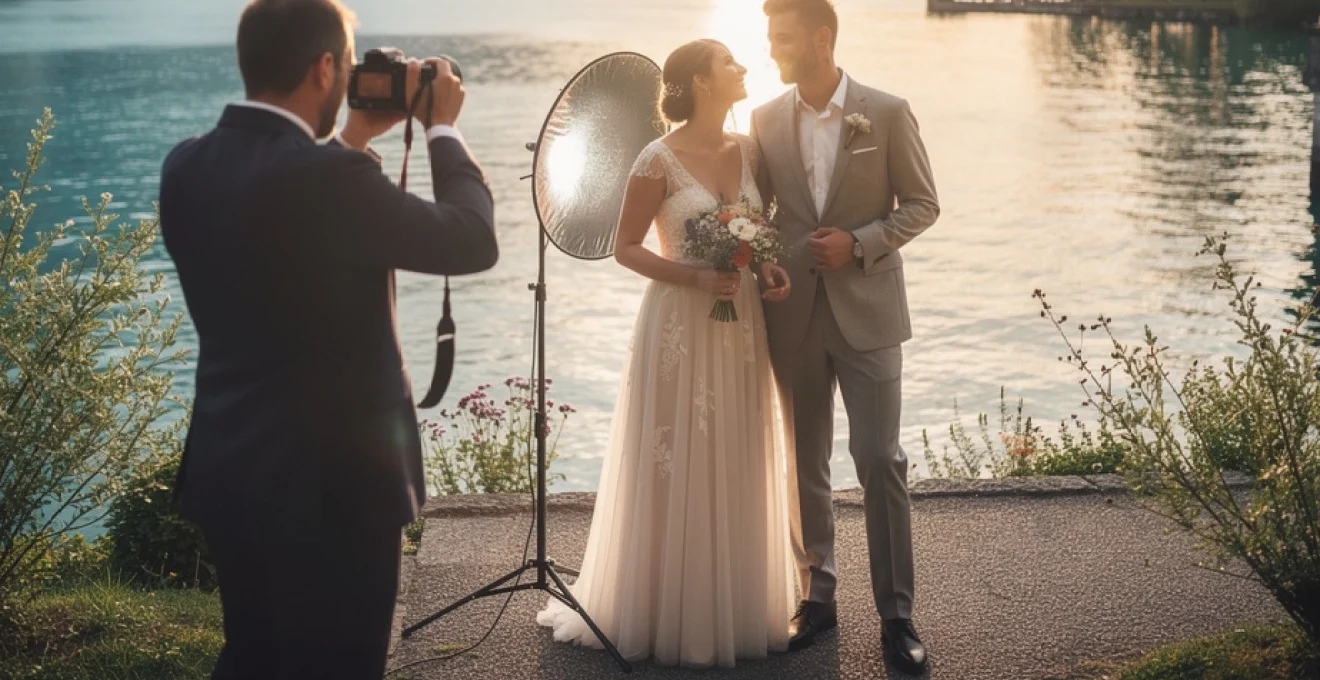 Concrètement, cela signifie parfois décaler légèrement la séance de couple pour profiter d’une accalmie, déplacer un shooting prévu sur une jetée à un endroit plus abrité, ou au contraire saisir l’opportunité d’un ciel orageux pour créer des images dramatiques et puissantes. La lumière après la pluie, par exemple, est souvent exceptionnelle : atmosphère purifiée, couleurs saturées, reflets intenses sur le lac. En planifiant intelligemment les temps forts du reportage, vous transformez les aléas météo en atouts visuels uniques.
